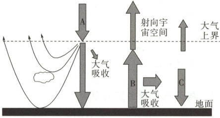 被对流层大气中的水汽和二氧化碳吸收,使大气增温。(3)C
