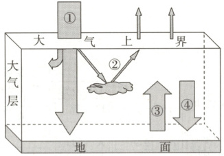 6.B 7.D [第6题,①为太阳辐射,A错误;②为云层反射的太阳辐射,B正确;③为地面长波辐射,C错误;④为大气逆辐射,D错误。第7题,“烟熏法”防御霜冻是通过制造大量烟雾,可增加近地面大气对地面长波辐射的吸收作用,增强大气逆辐射,提高地面温度,D正确。另外,柴草、牛粪等的燃烧本身也释放了一定的热量。]