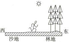 到林地和沙地间存在热力环流。读图,回答