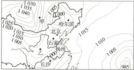 问题3 提示:甲地风力大于乙地。理由:甲地等压线密集,水平气压梯度力大。