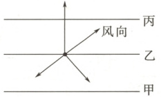 5.C 6.C [第5题,图中,垂直于等压线的是水平气压梯度力,由高压指向低压,因此图中等压线的气压值大小关系为甲>乙>丙。第6题,读图分析可知,该风向受地转偏向力影响向右偏转,说明所在半球为北半球。]