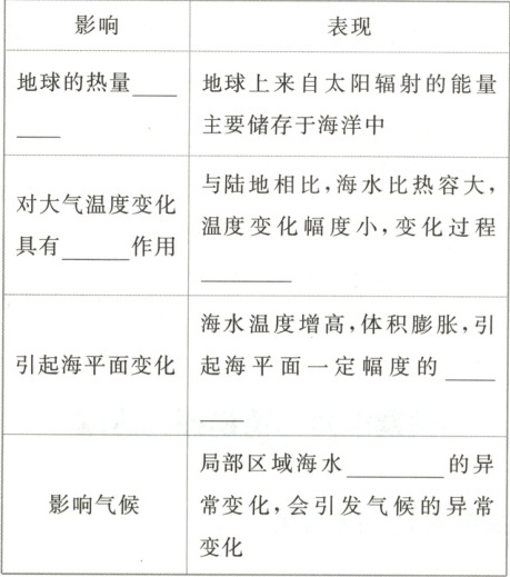 ① 水平分布规律:表层海水温度随着纬度的增加而降低。