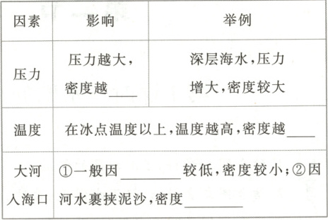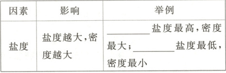 称为海水密度,其单位是g/cm³或kg/m³。(2)影响海水密度的因素