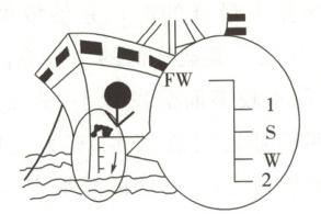 轮船上的“吃水线”又被称为“生命线”。为了安全航行,远洋轮船船体上都有几条水平横线分别表示该船在不同水域和不同季节所允许的满载时的“吃水深度”,如下图所示。其中FW表示淡水线,S表示夏季海洋线,W表示冬季海洋线。