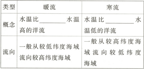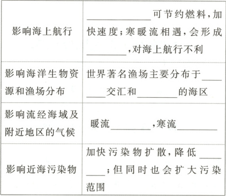(3)一定方向 盛行风 流经海区 流经海区 顺洋流航行 海雾 寒暖流 海水上泛 增温增湿 降温减湿 污染浓度