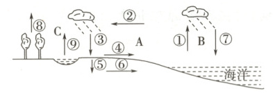 1.蒸发 降水 径流 连续不断、周而复始 2.地表径流 地下径流 蒸腾 3.