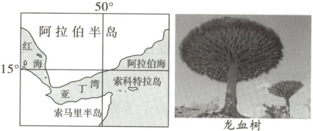 索科特拉岛石灰岩广布,岛上生长着独特的植物——龙血树,叶片为蜡质,生长缓慢,几百年才能长成一棵树。读图,回答第5题。
