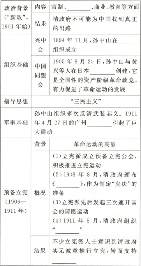 军事 檀香山 东京 黄花岗起义 钦定宪法大纲 皇族内阁 革命