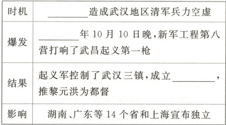 提示:保路运动发展成武装起义后,清政府调兵进行镇压,导致武昌空虚,为武昌起义创造了条件。