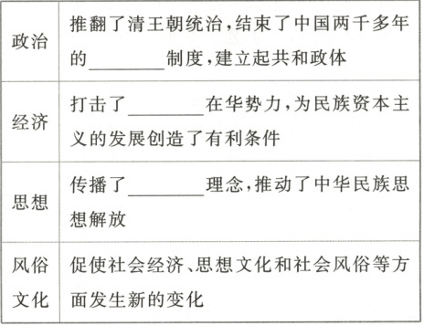 3. 思考:写出辛亥革命的历史局限。