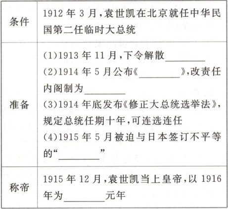 2.提示:目的:换取日本对其称帝的支持。危害:使日本侵略势力在满蒙、山东得到巩固和扩展,在华中、华南也有所增进,民族危机加深。