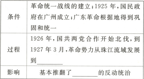 提示:对象:北伐的三个主要对象是吴佩孚、孙传芳、张作霖。方向:革命势力从珠江流域发展到长江流域。