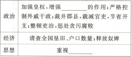 视角2 提示:措施:颁布“推恩令”;改革币制,将铸币权收归中央;尊崇儒术。作用:加强了中央集权,巩固了国家统一。