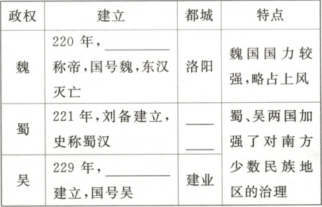 1. 观察教材P28《三国鼎立形势图(262年)》,试从地理因素分析三国鼎立局面形成的原因。