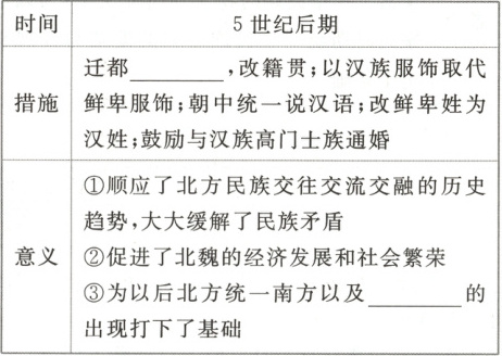2. 阅读教材P33“问题探究”,思考:材料体现了孝文帝改革的哪一内容?目的是什么?