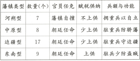 史料二 安史之乱后唐朝藩镇类型