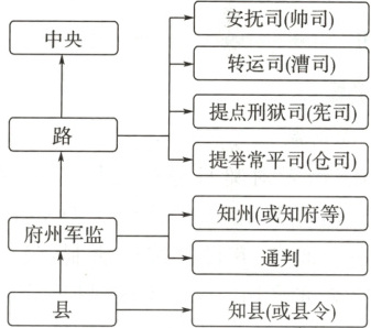 2. (据中外历史纲要上P53“教材图片”改编)下面是宋代的地方权力分配示意图。据此可知,宋代的地方行政制度设计(