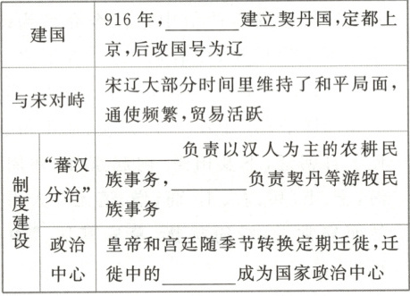 1. 观察教材P58《契丹人引马图》,思考:根据图片可以得出哪些与契丹人社会生活相关的信息?