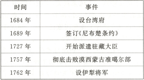 4. 如表所列清朝时期历史事件所反映的主题是(