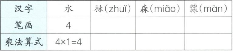 | 汉字 | 水 | 沝(zhuǐ) | 淼(miǎo) | 㵘(màn) |