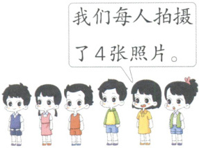 4 第一小组参加了二年级举行的“云南美景”摄影活动,他们一共拍摄了多少张照片? 我们每人拍摄了4张照片。