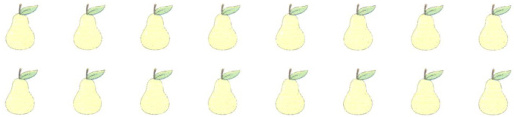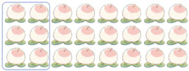 【解析】:图中共有16个梨,可平均分成2行,每行8个,除法算式为16÷2=8(答案不唯一,也可平均分成4行每行4个等)