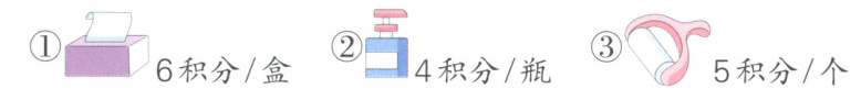 3 在“环保积分换礼物”活动中,冯阿姨用12积分换了一种商品,她可能换了几号商品?换了多少?