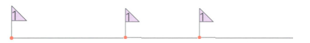 3. 在距离1号旗子3厘米处画2号旗子,5厘米处画3号旗子。