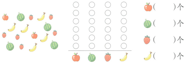 二、(重点题)按水果的种类分一分,再涂一涂、填一填。