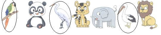 一、(教材改编)小金在云南野生动物园游玩,她看到了下面几种动物。请你把会飞的动物圈出来。