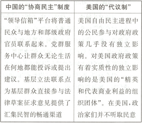 2. (2024·山东威海阶段练习)下面是中美民主对比。据此可以看出
