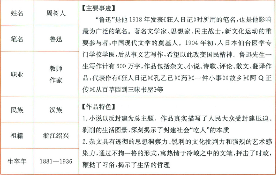 2. (浙江省绍兴市真题)阅读有关鲁迅的材料,完成练习。