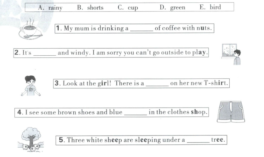 四、1. boy; toy; joy 2. short; orange