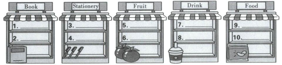 二、(2024 山东济南)选出同类的单词/词组,将序号写在对应的类别下方。