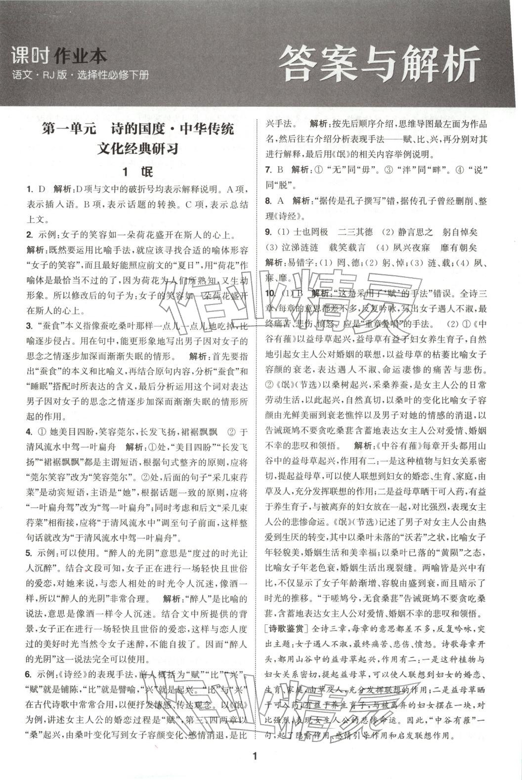 注:目前有些书本章节名称可能整理的还不是很完善,但都是按照顺序排列的,请同学们按照顺序仔细查找。练习册 2025年通成学典课时作业本高中语文选择性必修下册人教版 答案主要是用来给同学们做完题方便对答案用的,请勿直接抄袭。