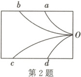 2.C 解析:由左手定则可以判断出在磁场中向下偏转的是带负电的粒子,由洛伦兹力提供向心力得$qvB = m\frac{v^2}{r}$,解得偏转半径$r = \frac{mv}{qB}$,四个粒子的质量相等,电荷量大小也相等,在相同的磁场中,半径大的速度也较大,则动能最大的带负电的粒子的轨迹是$Oc$,选项C正确。