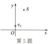 5.A 解析:粒子的运动轨迹如图所示,根据洛伦兹力提供向心力有$qv_0B = \frac{mv_0^2}{R}$,结合几何关系$3h^2 + (R - h)^2 = R^2$,解得$B = \frac{mv_0}{2qh}$,选项A正确。