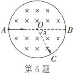 6.B 解析:画出轨迹图,如图所示,由几何关系可知,圆心角$\angle AO_1C = \theta$,则由几何关系可知$\tan \frac{\theta}{2} = \frac{R}{r}$,根据洛伦兹力提供向心力,有$qvB = m\frac{v^2}{r}$,联立解得$B = \frac{mv}{qR} \tan \frac{\theta}{2}$,选项B正确。