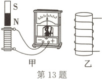 (3)若线圈绕向如图乙所示,实验中该同学将条形磁铁 N 极朝下从线圈上方向下插入线圈,则在以上过程中,电流计的指针向