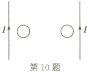 10. (2024·辽宁大连二模)如图,在水平光滑桌面上,固定两条平行绝缘直导线,通以相同电流,导线之间放置两个相同的圆形小线圈。当两侧导线中电流同样增大时,忽略两小线圈之间的作用力,则 (