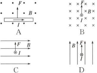 1.C 解析:磁感线向外,电流方向水平向右,由左手定则可知安培力方向竖直向下,选项A错误;电流方向与磁场方向平行,此时通电导线不受安培力,选项B错误;磁感线水平向右,电流方向向外,根据左手定则可知安培力方向向上,选项C正确;磁感线向上,电流方向向里,根据左手定则可知安培力方向水平向右,选项D错误。