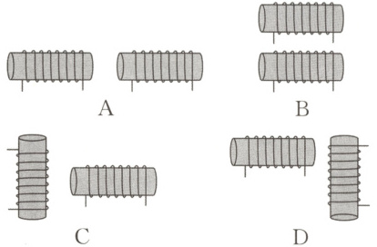 1.C 解析:通电线圈产生的磁感线是过线圈的闭合曲线,由各选项中的线圈的相互位置可知,C选项中一线圈通电时,另一线圈中的磁通量几乎为0,不易产生互感现象,选项C与题意相符。