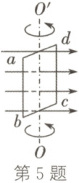 5. (2024·河南创新联盟联考)如图所示,一个竖直放置,匝数为$n$的矩形线圈$abcd$在水平向右的匀强磁场中以角速度$\omega$匀速转动,转轴$OO'$与磁场方向垂直,线圈面积为$S$,磁感应强度大小为$B$,下列说法正确的是(