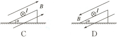 6.A 解析:根据左手定则可知,选项A中导线所受安培力沿斜面向上,直导线可能平衡,选项A正确;根据左手定则可知,选项B中导线所受安培力沿斜面向下,直导线不可能平衡,选项B错误;根据左手定则可知,选项C中导线所受安培力垂直斜面向下,直导线不可能平衡,选项C错误;根据左手定则可知,选项D中导线所受安培力垂直斜面向上,直导线不可能平衡,选项D错误。
