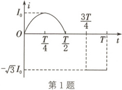 1.A 解析:根据有效值的概念可知$(\frac{I_0}{\sqrt{2}})^2R · \frac{T}{2}+(\sqrt{3}I_0)^2R · \frac{T}{4}=I^2RT$,解得$I = I_0$,选项A正确。