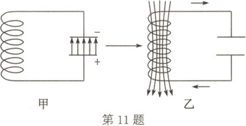 11. (2024·辽宁丹东模拟)对于$LC$振荡电路,从图甲到图乙的物理过程,下列说法正确的是 (