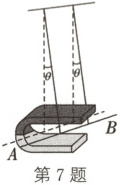 7.D 解析:根据左手定则可知,金属棒中通入电流的方向是由B向A,选项A错误;对金属棒受力分析,如图所示,根据力的平衡条件,可得磁场力大小为$F = mg\tan\theta$,选项B错误;由牛顿第二定律,可得$mg\tan\theta = ma$,则接通电源瞬间金属棒的加速度大小为$a = g\tan\theta$,选项C错误;根据$F = BIL$,联立解得$B = \frac{mg\tan\theta}{IL}$,选项D正确。