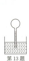 13.CD 解析:细管中的红色液体用来显示球形瓶中空气的体积随温度的变化情况,测温物质是球形瓶中封闭的空气,该温度计是利用空气的热胀冷缩的性质制造的,选项AB错误,CD正确。