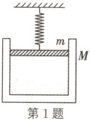 1. 如图所示,活塞的质量为$m$,缸套的质量为$M$,通过弹簧吊在天花板上,汽缸内封住一定质量的气体,缸套和活塞间无摩擦,活塞面积为$S$,大气压强为$p_0$,则封闭气体的压强为(重力加速度为$g$)(