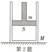 2.C 解析:对缸筒受力分析可知$p_0S = pS + Mg$,解得$p = p_0 - \frac{Mg}{S}$;对整体受力分析可得$F = (M + m)g$,选项C正确。